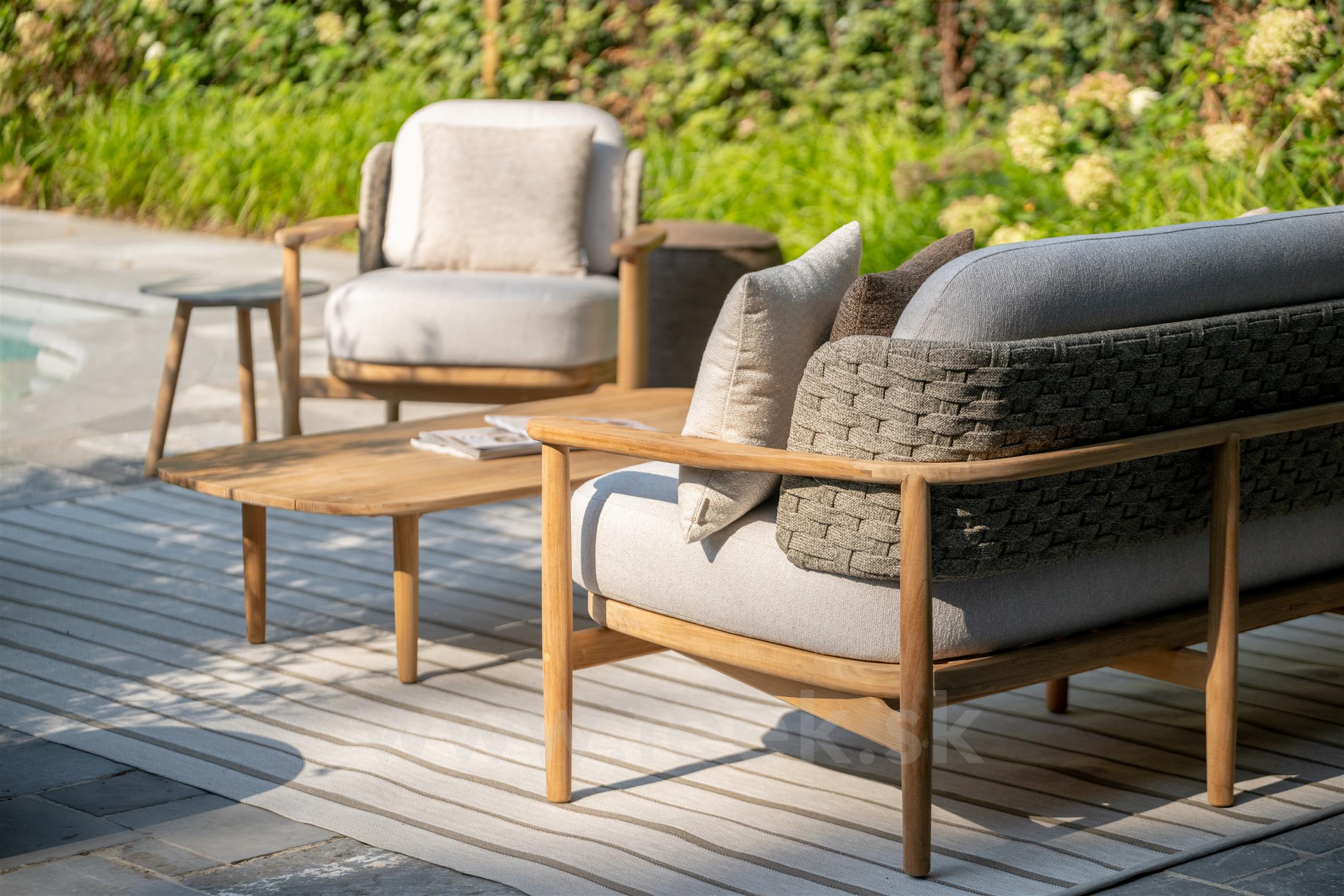 Teaková 3-miestna pohovka Boho, Jati Kebon, teak, lano, vonkajšia tkanina
