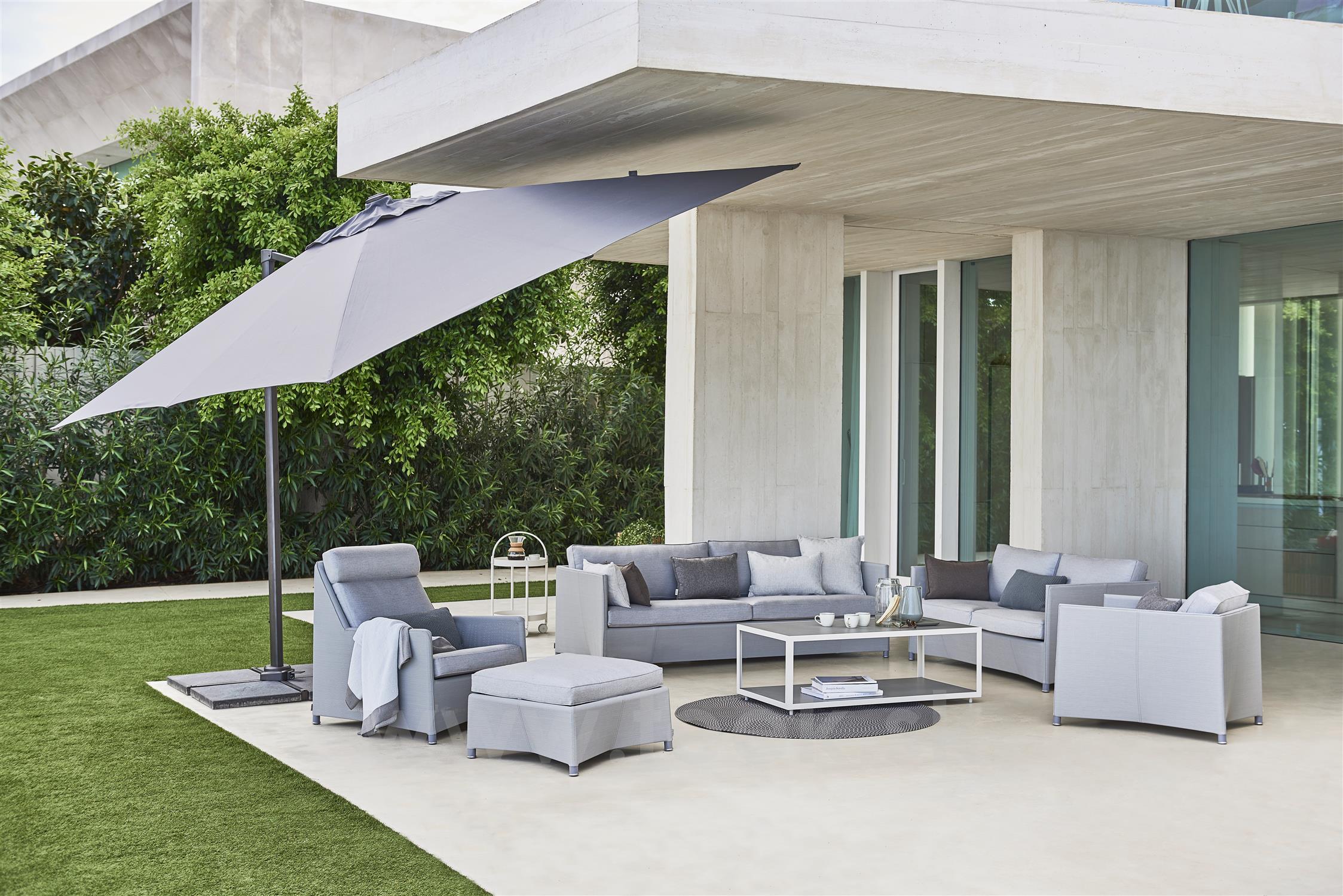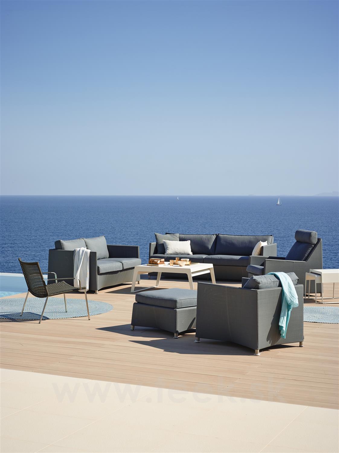 Konstrukcia vonkajšej pohovky je z hliníka. Výplet je z textilenu (Cane-line Tex). Sedáky a vankúše Sunbrella, výplň rýchloschnúca pena. V niekoľkých farebných prevedeniach.