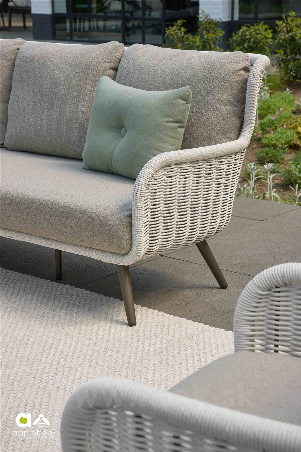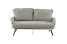 2-miestna pohovka Key Largo, Apple Bee, 162x92x93 cm, rám hliník farba bronze, výplet lanko Twisted Ivory, sedáky vonkajšia látka Bouclé Taupe