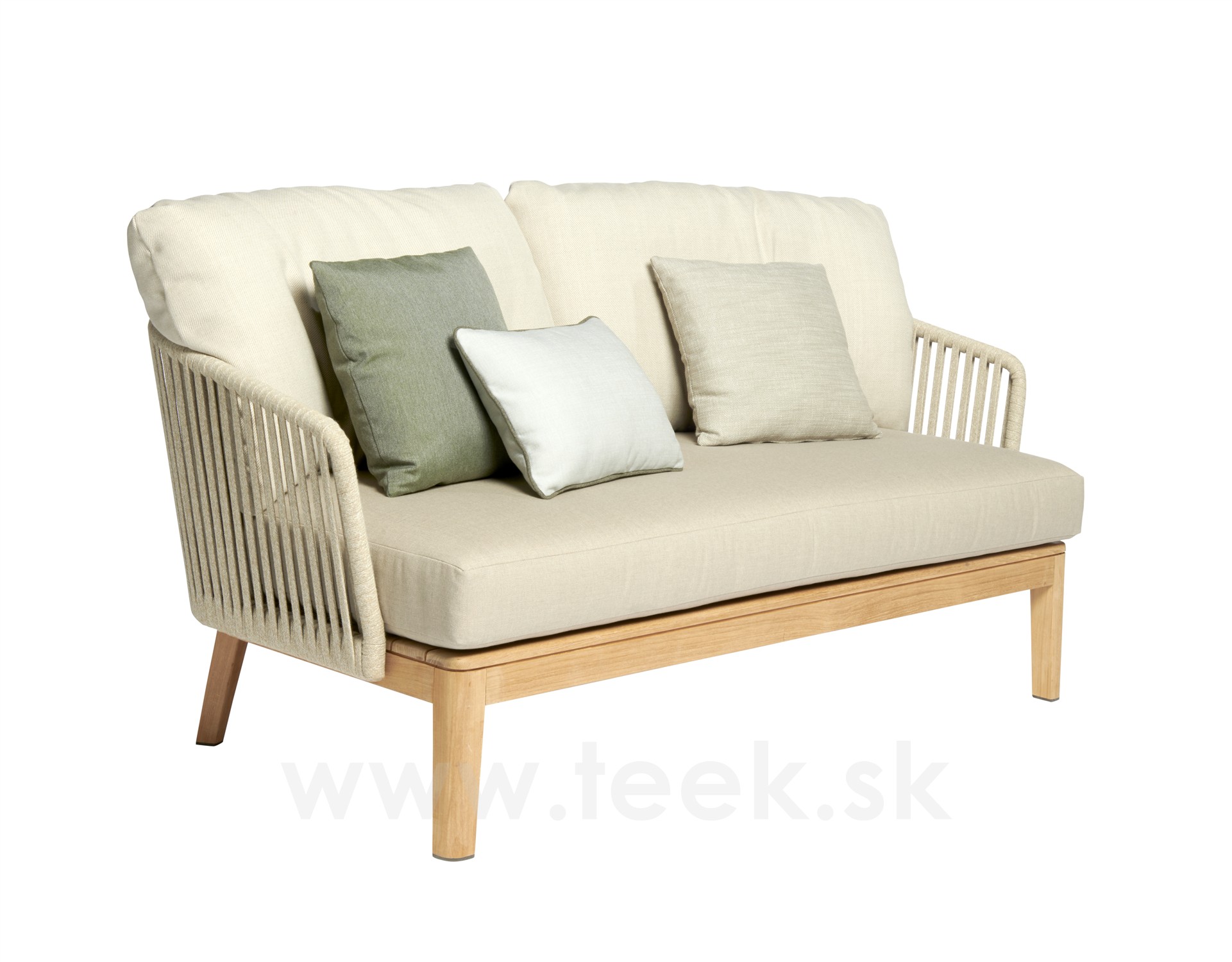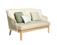 Teak 2-seater sofa Mood, Tribu, 159x81x69 cm, teak frame, linen-colored rope weave, without cushions