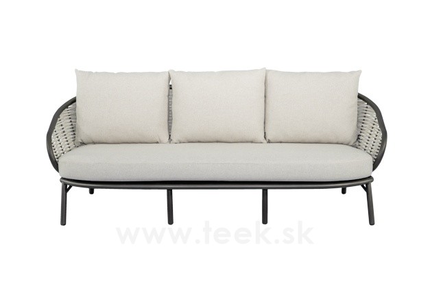 3-miestna pohovka Pine Key, Apple Bee, 203x83,5x79 cm, rám hliník Bronze (bronzová), výplet umelý ratan Oyster, sedáky vonkajšia látka Natur-CN