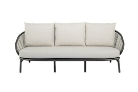 3-miestna pohovka Pine Key, Apple Bee, 203x83,5x79 cm, rám hliník Oyster (krémová), výplet umelý ratan Seashell, sedáky vonkajšia látka Cotton Flower