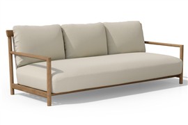 Vonkajšia 3-miestna pohovka/sofa Amanu s rámom z teakového dreva a lankovým výpletom. K vonkajšej pohovke je potrebné doobjednať sedák a oporné vankúše, ktoré nie sú súčasťou. Sedák a oporné vankúše sú z vonkajších odolných látok a z rýchloschnúcej výplne.
