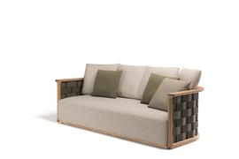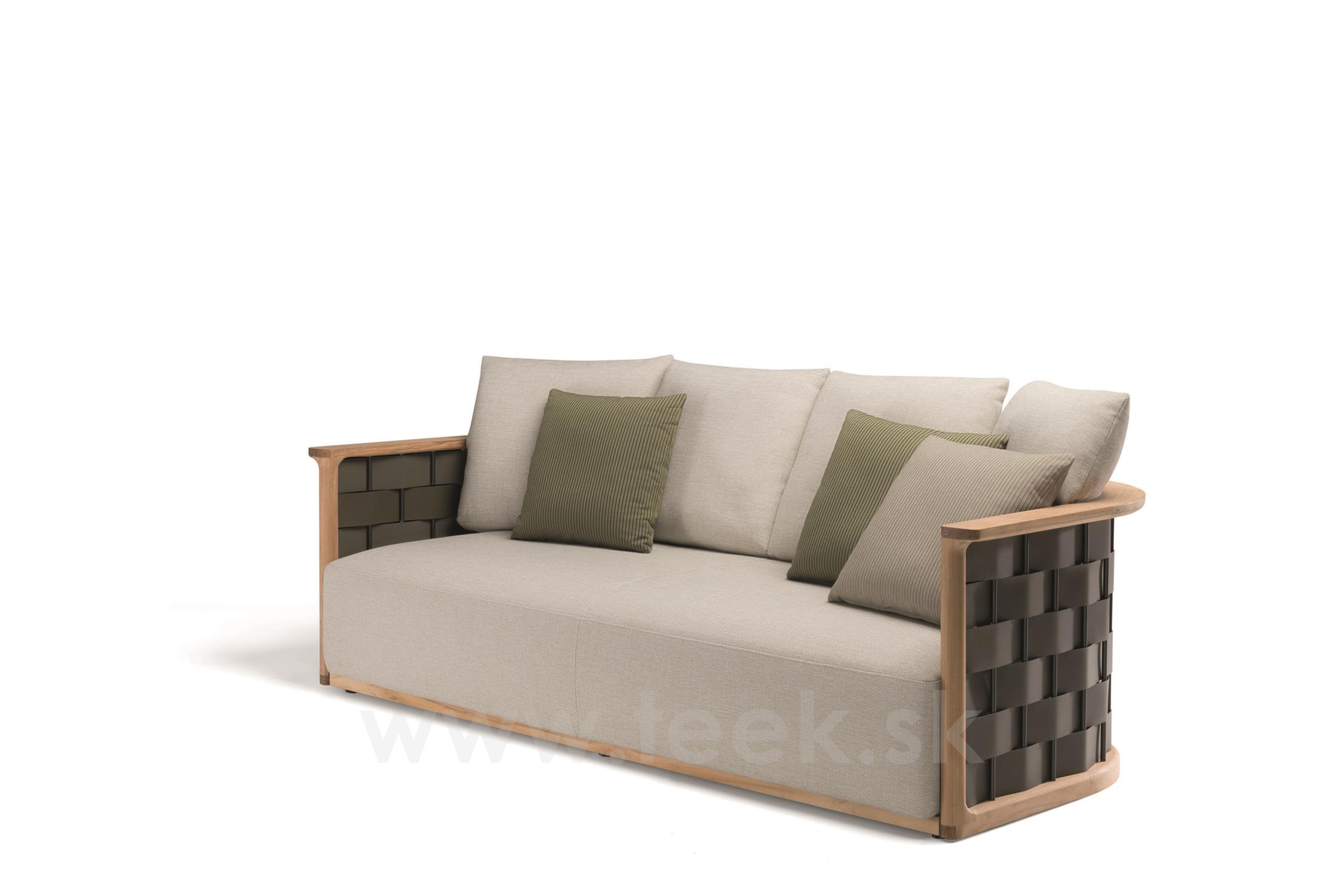 Trojsedadlová pohovka Palinfrasca, Molteni, 208x98x67 cm, rám teak, výplet teak/olive green EVA polyurethane, sedák vonkajšia látka kat. S farba podľa vzorkovníka