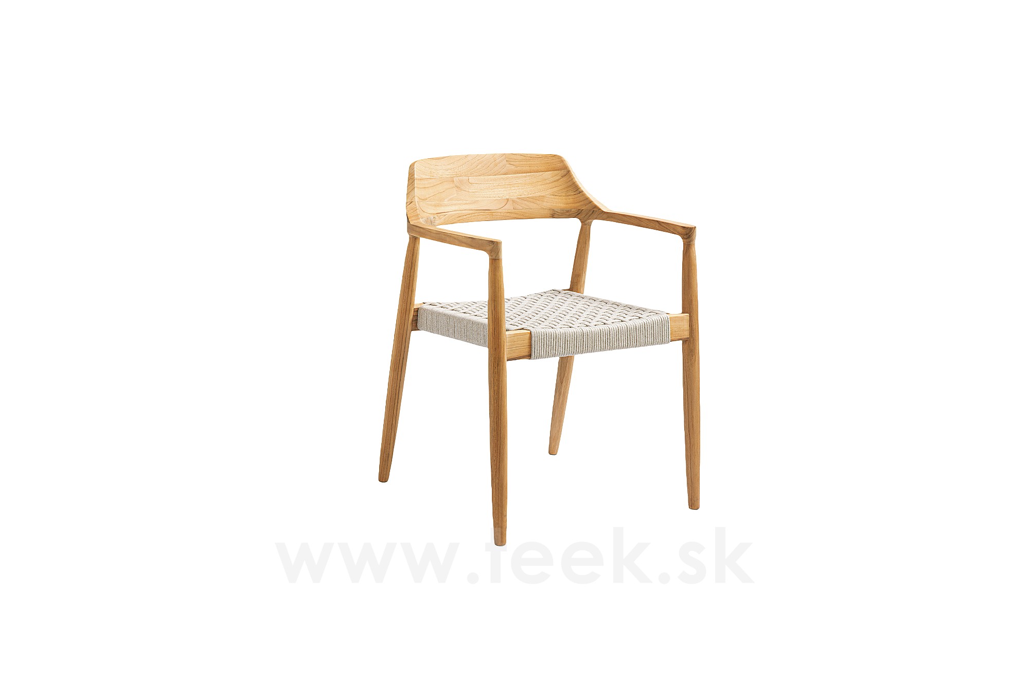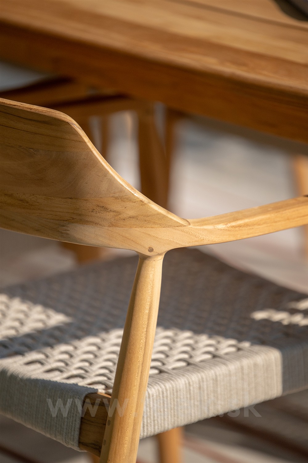 Jedálenské kreslo Tofino Teak, Jati Kebon, rám teak, výplet lanko 5 mm farba linnen, bez sedáku