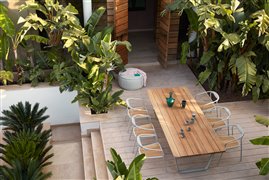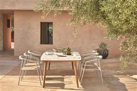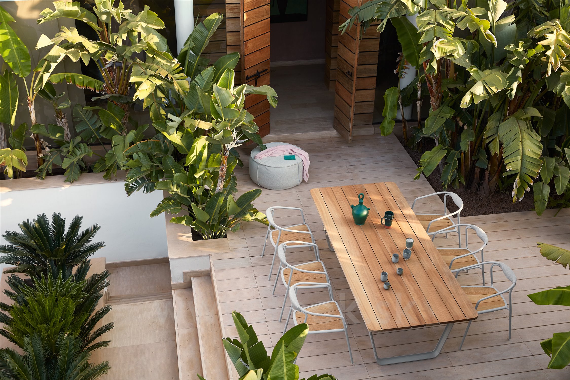Jedálenské stohovateľné kreslo Duo, Manutti, hliník, teak