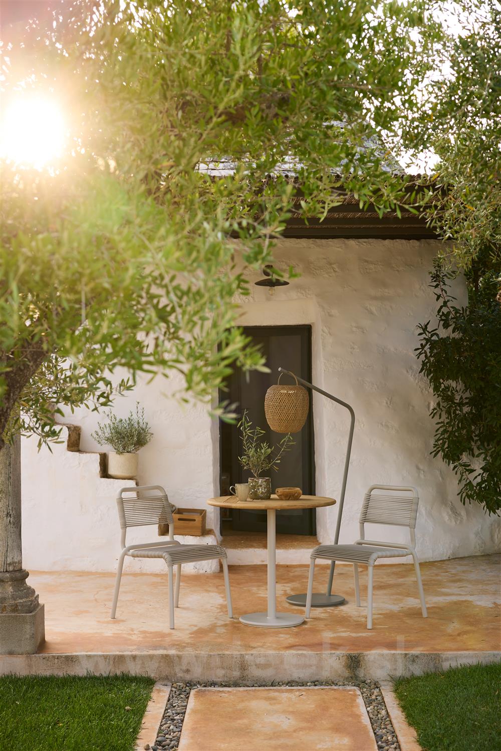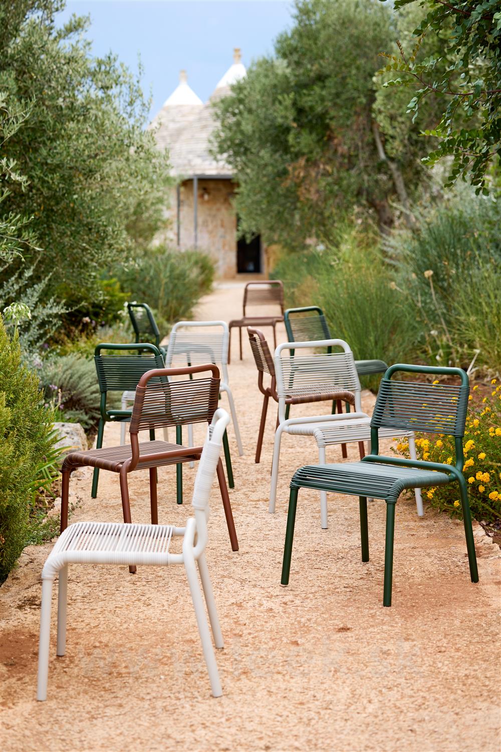 Rám židle je z hliníku. Lankový výplet z umělého ratanu (Cane-line Weave).