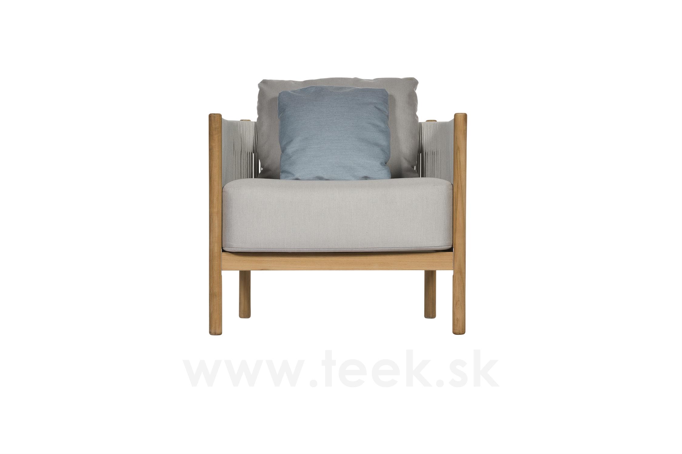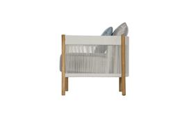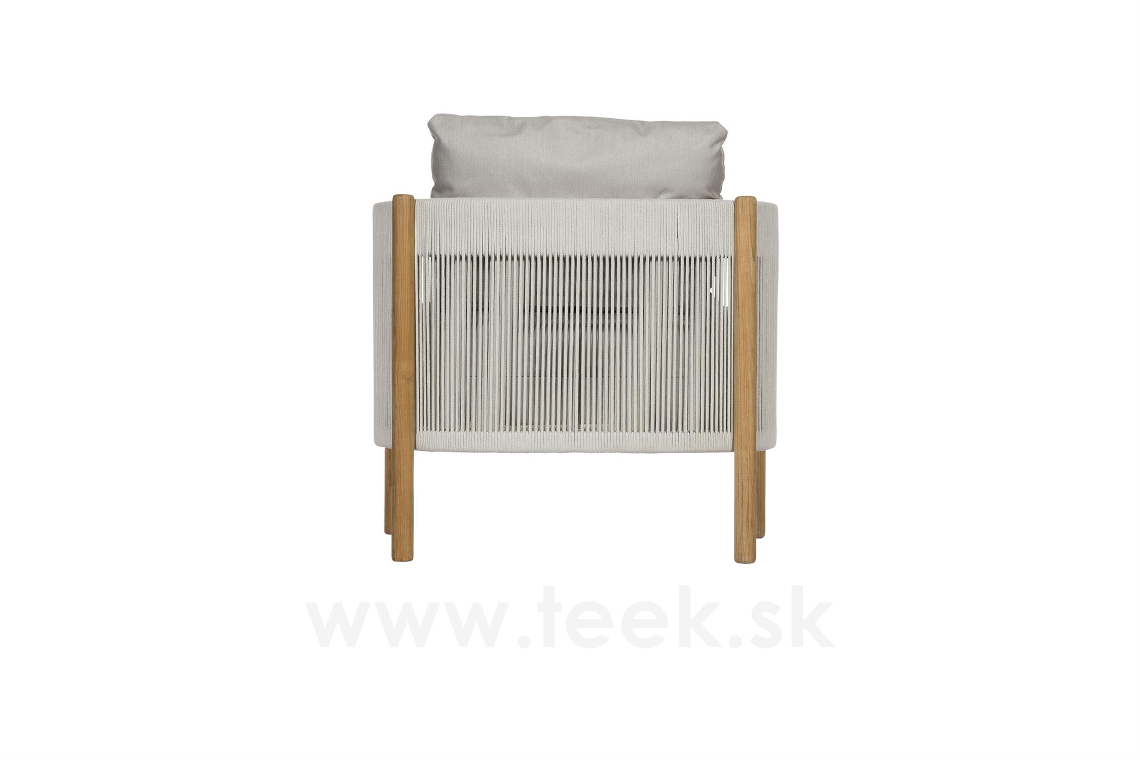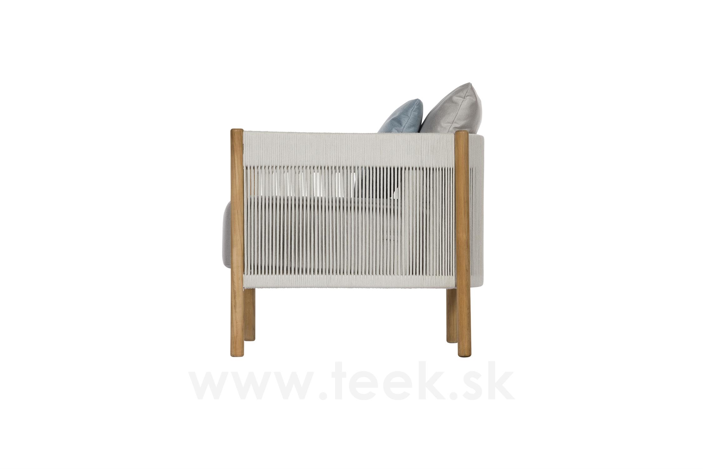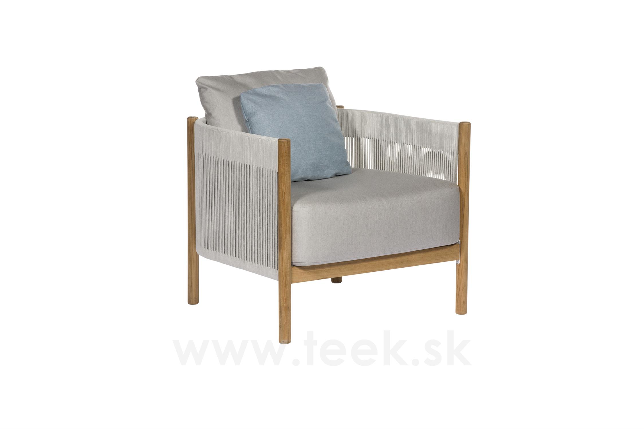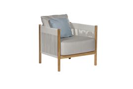 Low chair Cocoon, Barlow Tyrie, 84x84x72 cm, teak frame, rope weave color chalk, outdoor fabric Sunbrella Standard color as per sample book