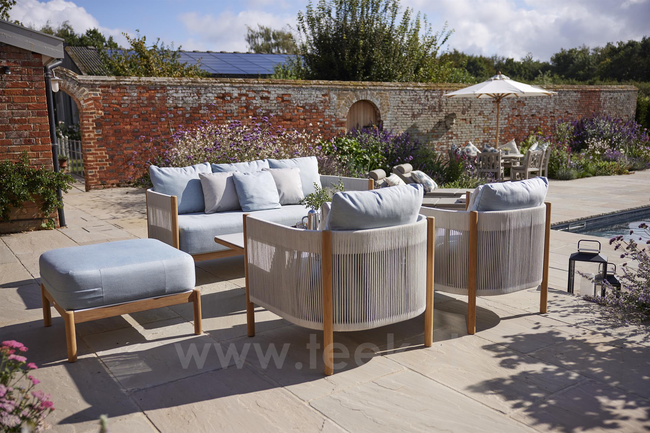 Low Cocoon Chair, Barlow Tyrie, teak, rope weave