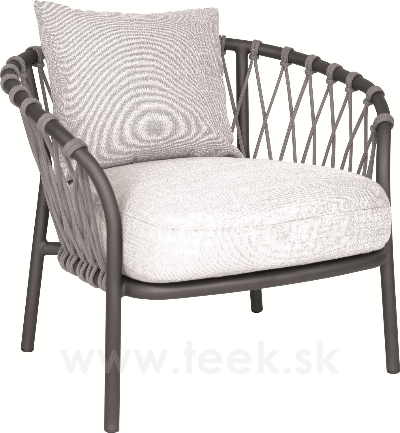 Nízké křeslo Klea s nízkou opěrkou, Stern, rám hliník greige, výplet lanko greige, sedáky 100% akryl Pearl Grey