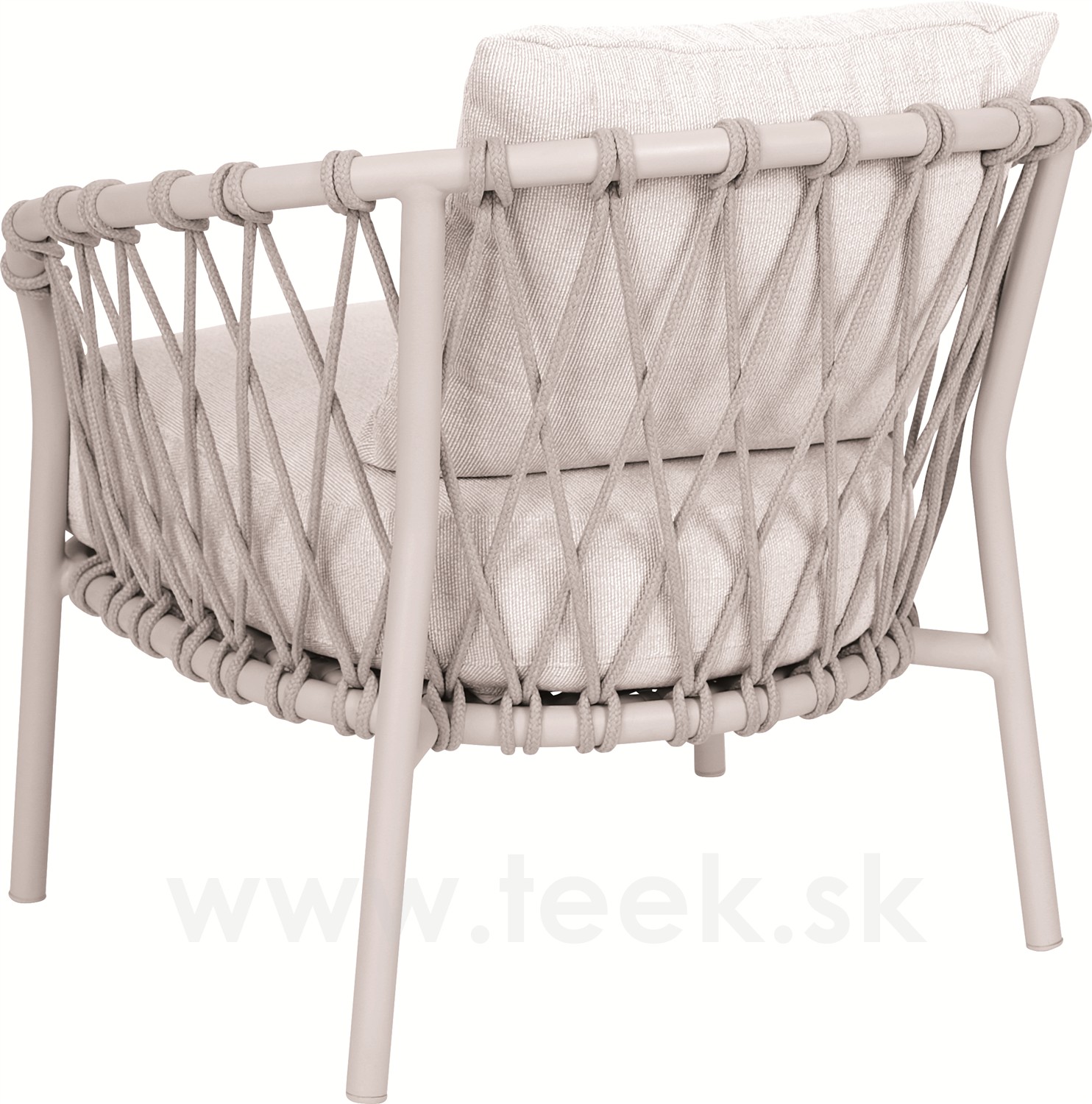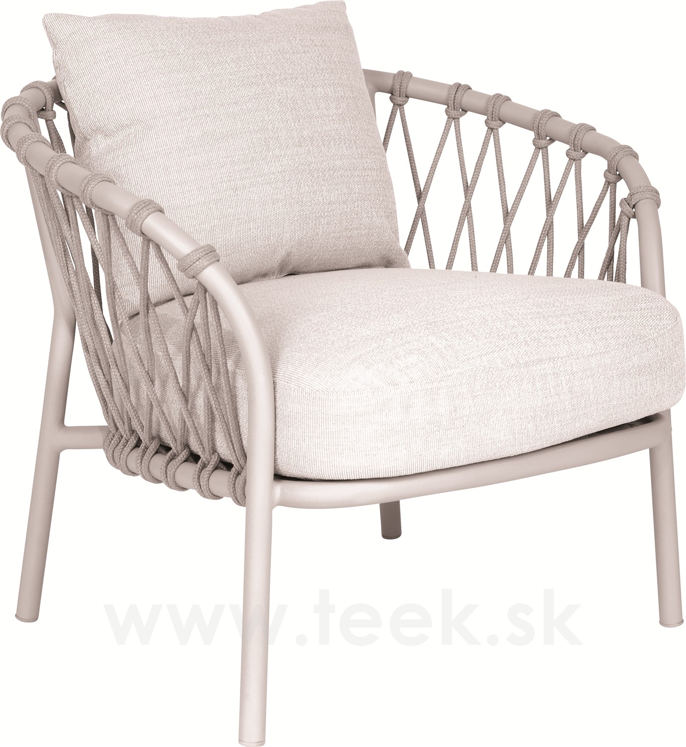Nízké křeslo Klea s nízkou opěrkou, Stern, rám hliník greige, výplet lanko greige, sedáky 100% akryl Vanilla