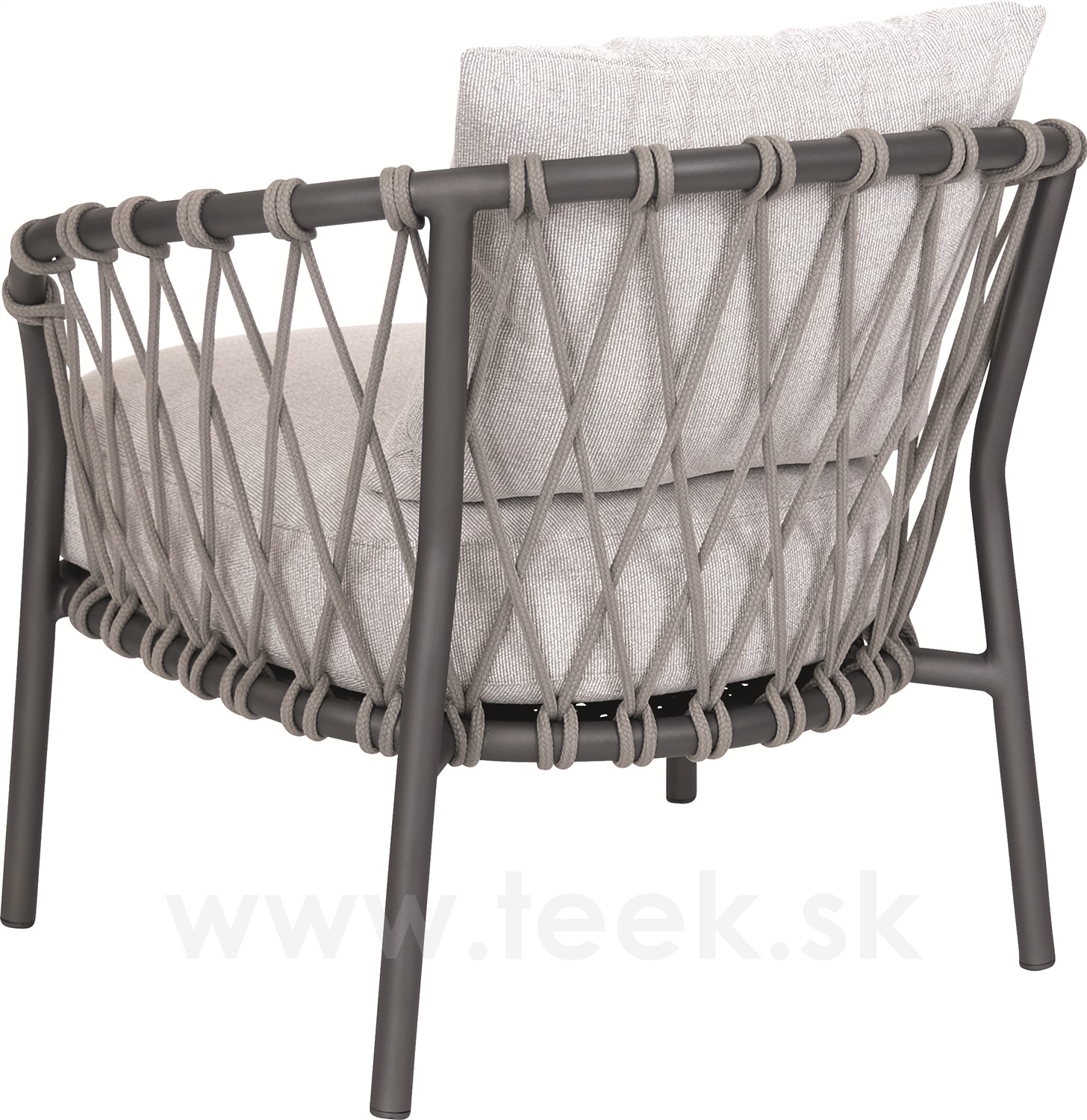 Nízké křeslo Klea s nízkou opěrkou, Stern, rám hliník antracit mat, výplet lanko Stone, sedáky 100% akryl Peal Grey