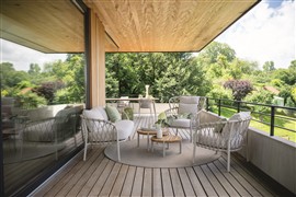 Nízké křeslo Klea, Stern, hliník, lankový výplet, venkovní látka