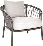 Nízké křeslo Klea s nízkou opěrkou, Stern, rám hliník antracit, výplet lanko Stone, sedáky 100% akryl Vanilla