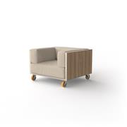 Nízke kreslo na kolieskach Vineyard, Vondom, 107x94x71 cm, lakovaný hliník, sivý teak, podušky na sedenie z vonkajšej tkaniny skupiny 1A a 1B, farba podľa vzorkovníka