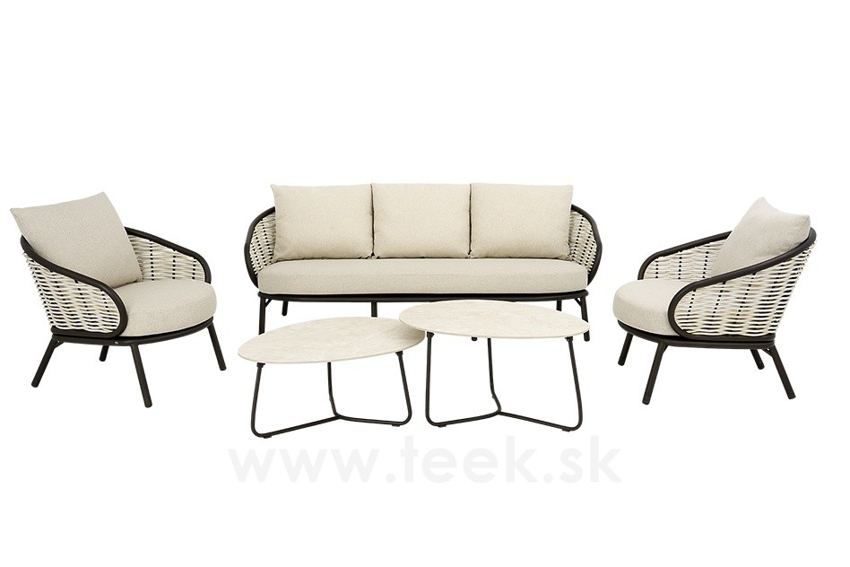 Nízke kreslo Pine Key, Apple Bee, rám hliník Bronze, výplet umelý ratan Oyester, sedáky vonkajšia látka Natur-CN
