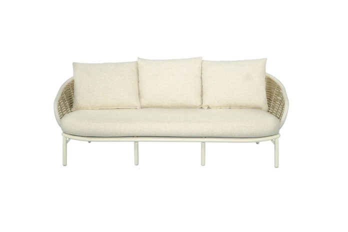 Nízké kreslo Pine Key, Apple Bee, rám hliník Oyster (krémová), výplet umelý ratan Seashell, sedáky vonkajšia látka Cotton Flower