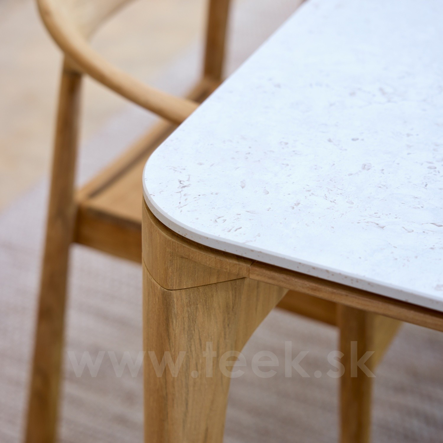 Vonkajší jedálenský stôl Aspect, Cane-line, 210x100x74 cm, rám teak, doska keramika dekor travertine