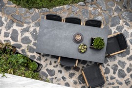 Vonkajší jedálenský stôl Aspect, Cane-line, 210x100x74 cm, rám teak, doska keramika dekor fossil black