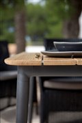 Hliníkový záhradný jedálenský stôl kolekcie Core značky Cane-line. Rám je z hliníka. Doska stola je z tíkového dreva.