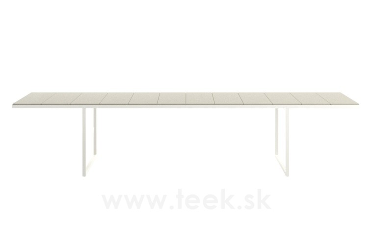 Dining table Nox, Tribu, rectangular 352x99x74 cm, frame lacquered stainless steel linen, top glazed lava stone color linen