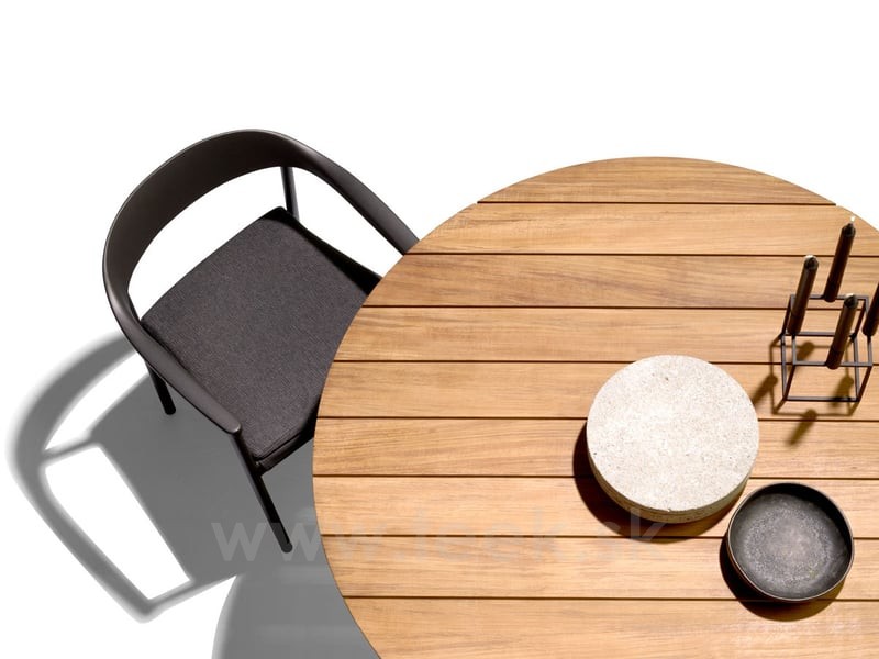 Jedálenský stôl T-Table, Tribu, okrúhly 80x76 cm, rám lakovaná nerez farba dark bronze, doska teak