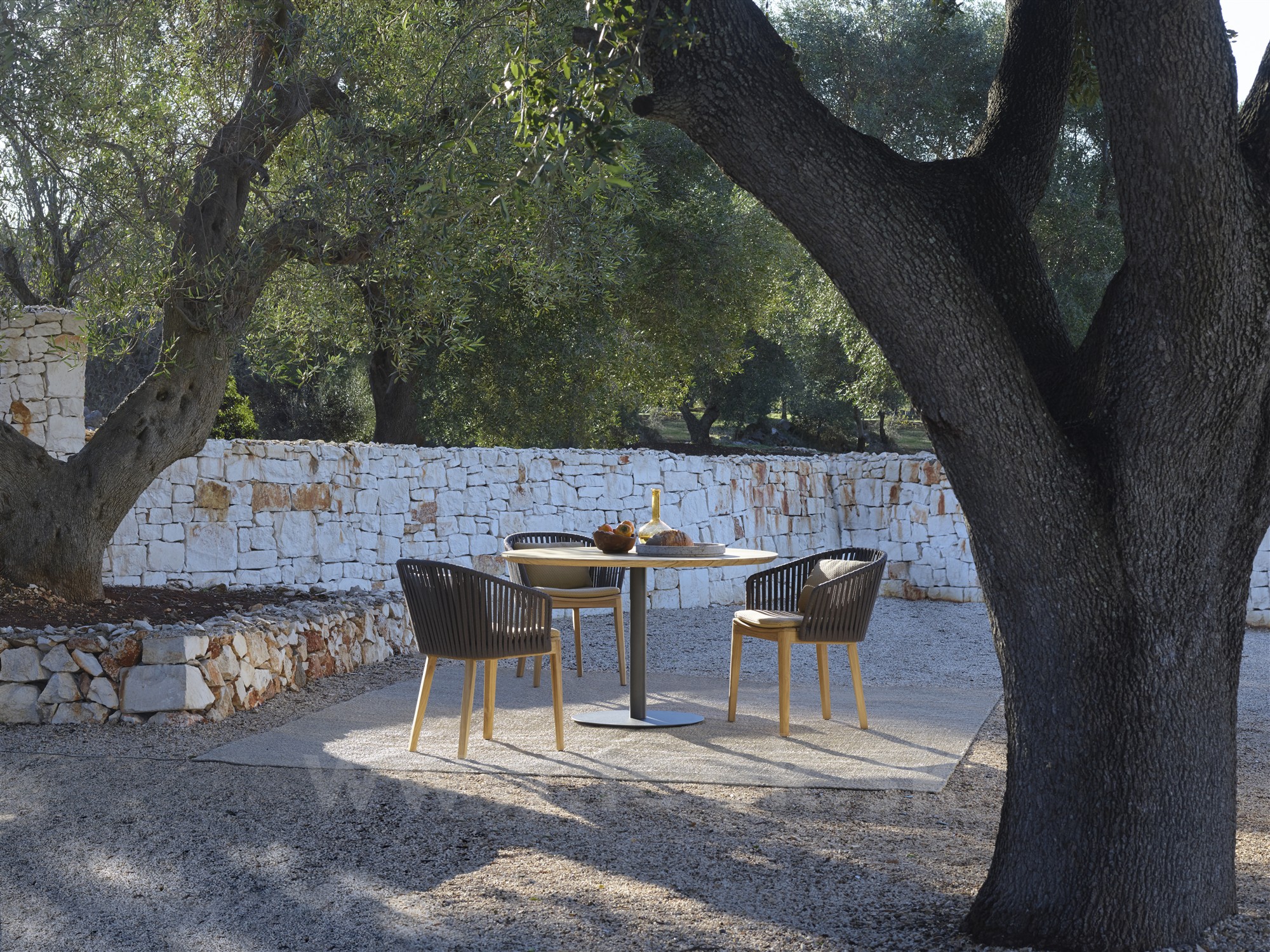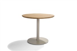 Jedálenský stôl T-Table, Tribu, okrúhly 80x76 cm, rám lakovaná nehrdzavejúca farba linen, doska teak