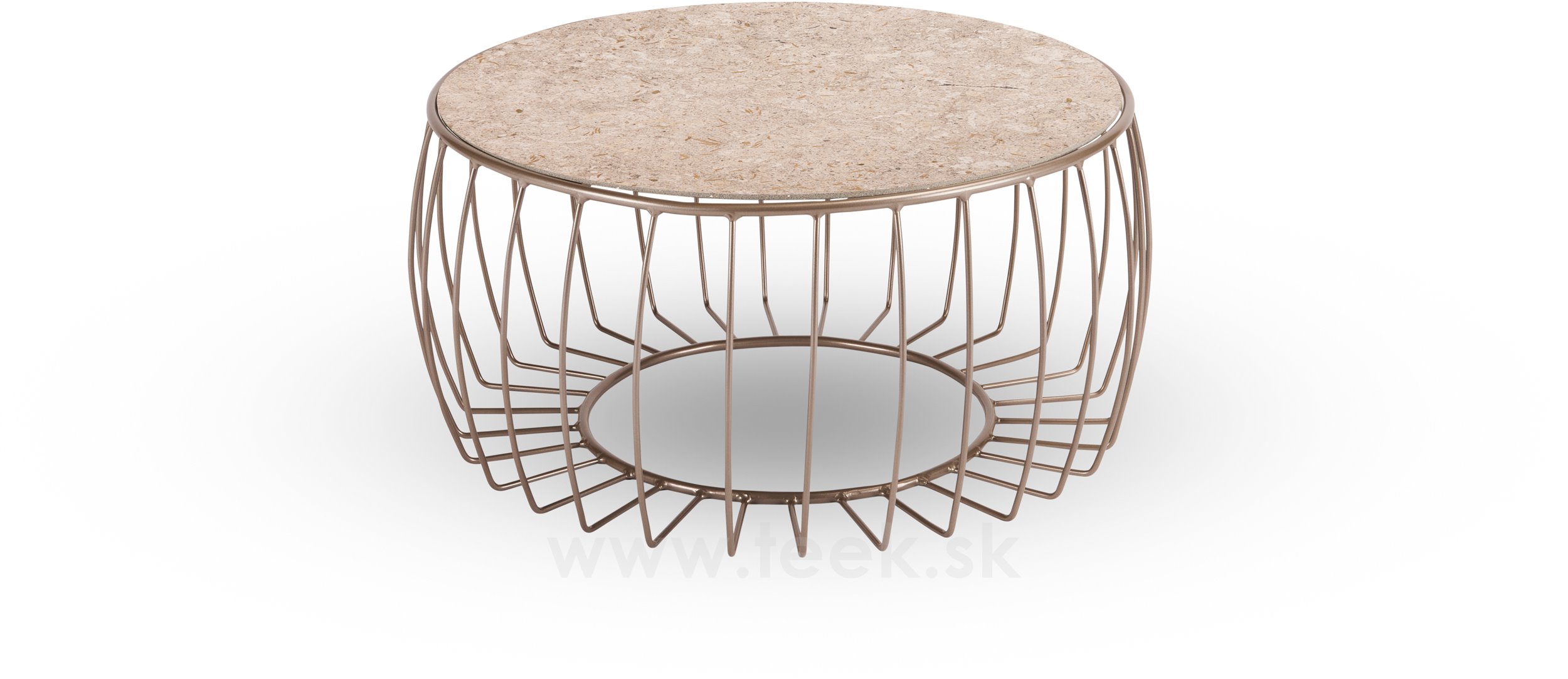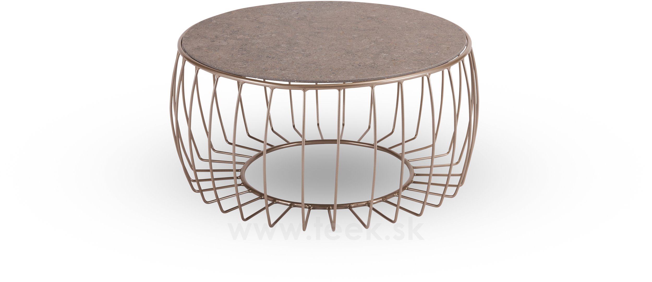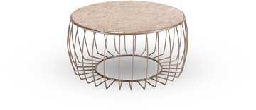 Odkládací stolek Oxo, Stern, kulatý 77x37 cm, průměr desky 68 cm, rám lakovaný hliník sand matt, deska keramika dekor Stone beige