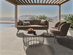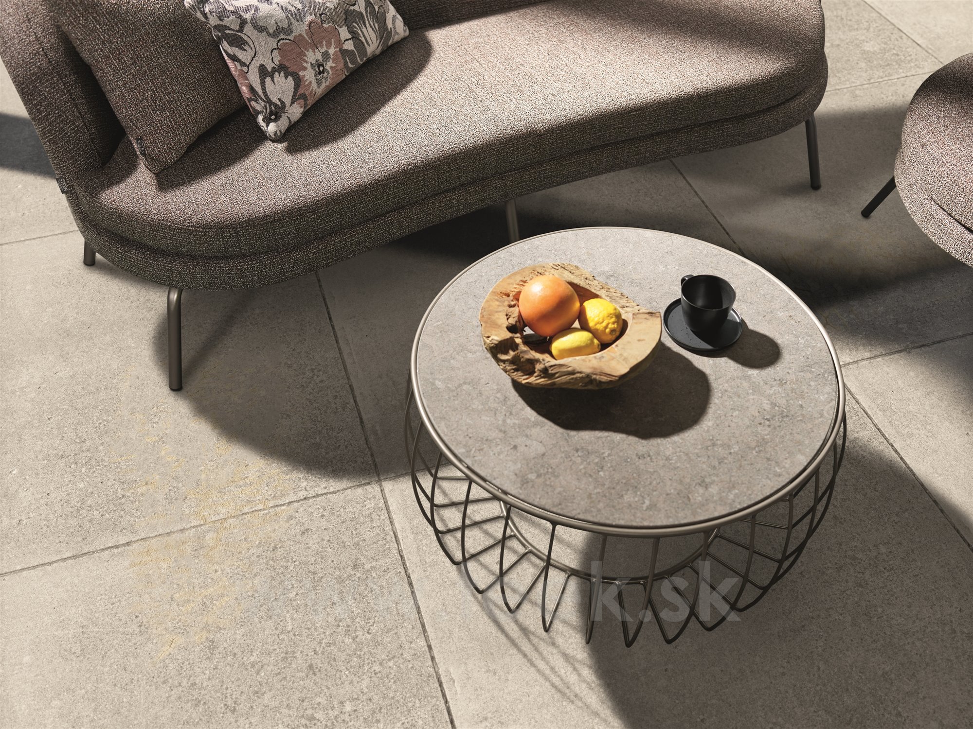 Odkládací stolek Oxo, Stern, kulatý 77x37 cm, průměr desky 68 cm, rám lakovaný hliník sand matt, deska keramika dekor Stone grey