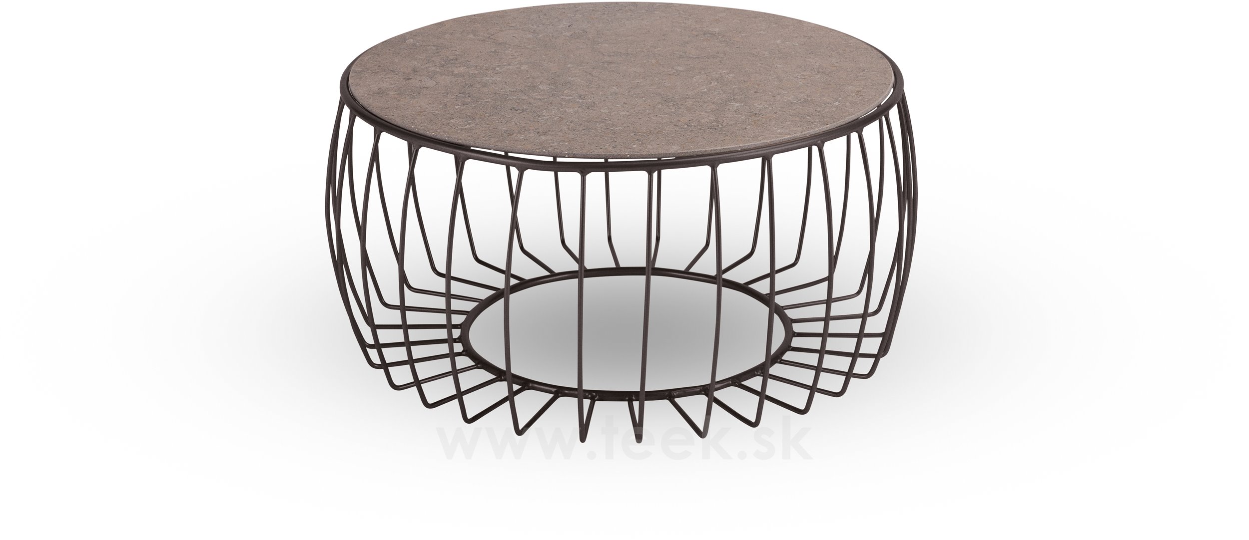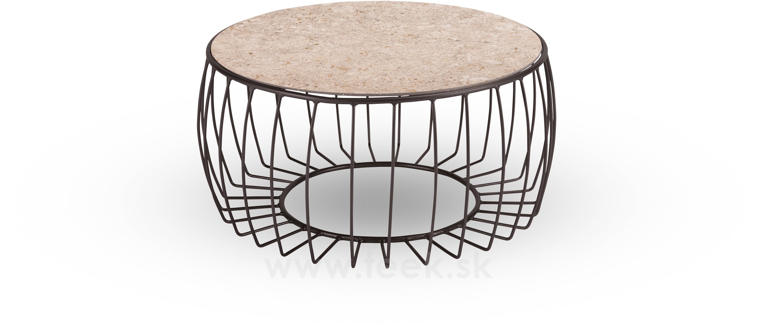 Rozměry: Celkový průměr 77 cm, průměr keramické desky 68 cm, výška stolku 37 cm.