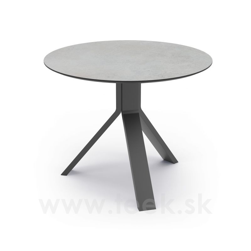 Odkladací stolík Freddie, Stern, okrúhly 60x48 cm, rám lakovaný hliník antracit, doska HPL Cement