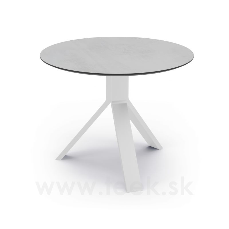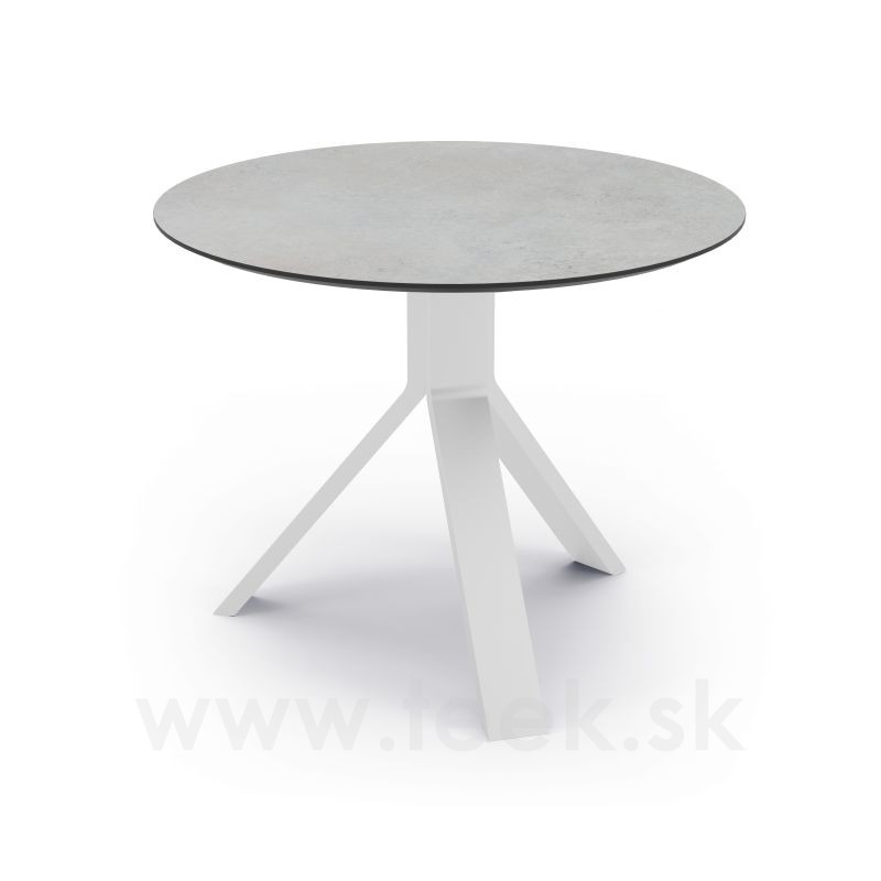Odkladací stolík Freddie, Stern, okrúhly 60x48 cm, rám lakovaný hliník white, doska HPL Cement