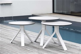 Odkladací stolík Freddie, Stern, okrúhly 60x48 cm, rám lakovaný hliník biely (white), doska HPL, Quartz