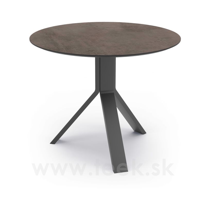 Odkladací stolík Freddie, Stern, okrúhly 65x53 cm, rám lakovaný hliník šedý-čierny (antracit), doska HPL, Quartz