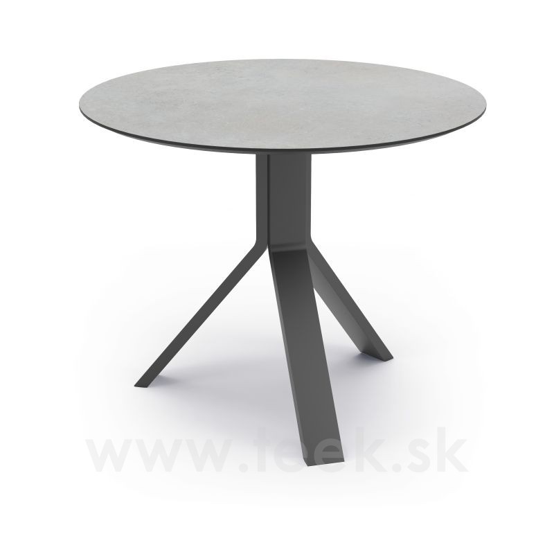 Odkladací stolík Freddie, Stern, okrúhly 65x53 cm, rám lakovaný hliník graphite, doska HPL Cement
