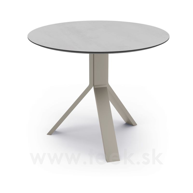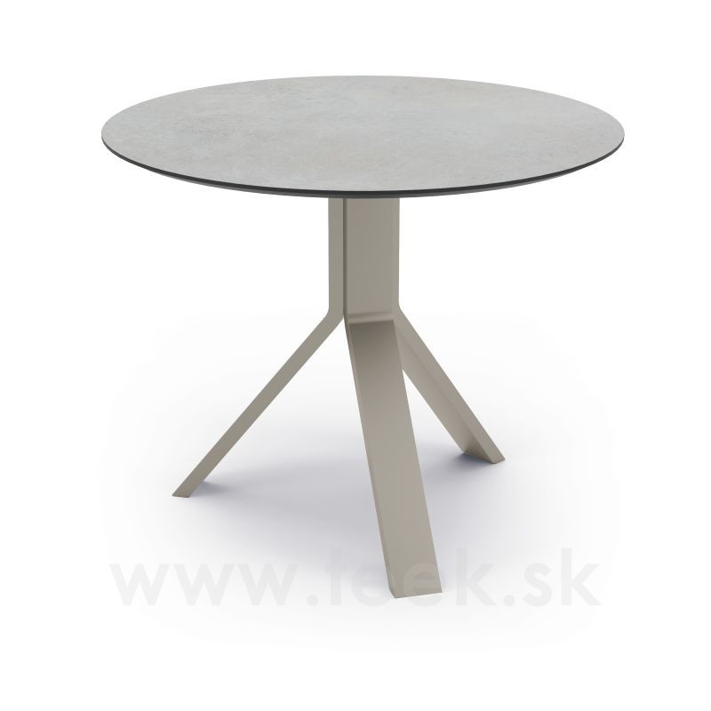 Odkládací stolek Freddie, Stern, kulatý 65x53 cm, rám lakovaný hliník greige, deska HPL Quartz