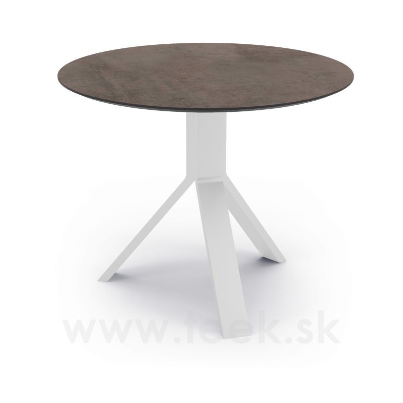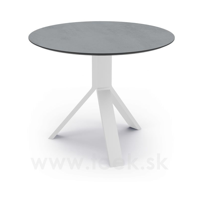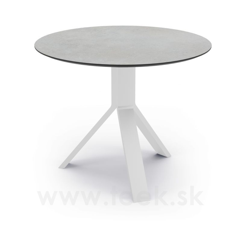 Odkladací stolík Freddie, Stern, okrúhly 65x53 cm, rám lakovaný hliník white, doska HPL Cement