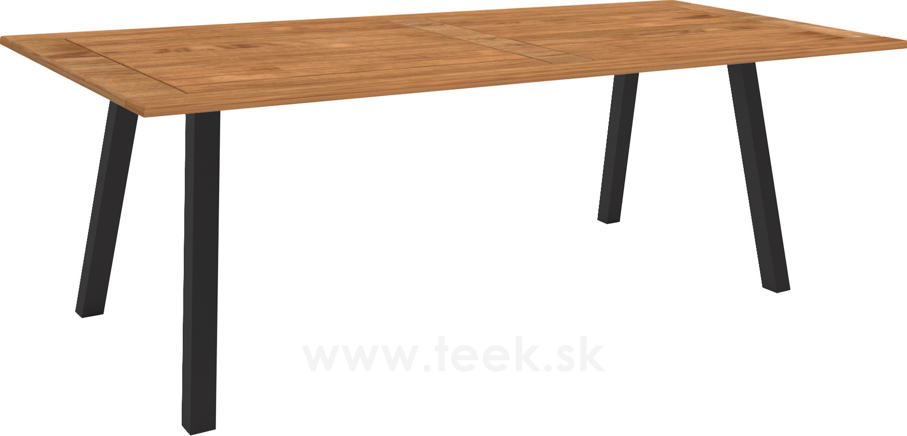 Jedálenský stôl Interno, Stern, obdĺžnikový 220x100x75 cm, štvorcový profil nohy, hliníkový rám lakovaný čiernou matnou farbou, vrchná doska z teakového dreva