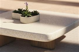 Nízký stolek Milos, Vondom, čtvercový 100x100x25 cm, rám dřevo iroko, deska beton