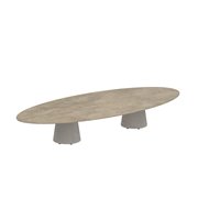 Betónový nízky stôl Conix, Royal Botania, elipsa 320x140x50 cm, podstavec cementová šedá, vrchná doska keramická terra sabbia