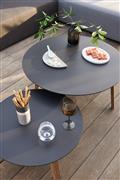 Skladací stôl Easy-Fit, Diphano, okrúhly priemer 60x V55 cm, teakové nohy, hliníková doska sivo-čierna (láva)